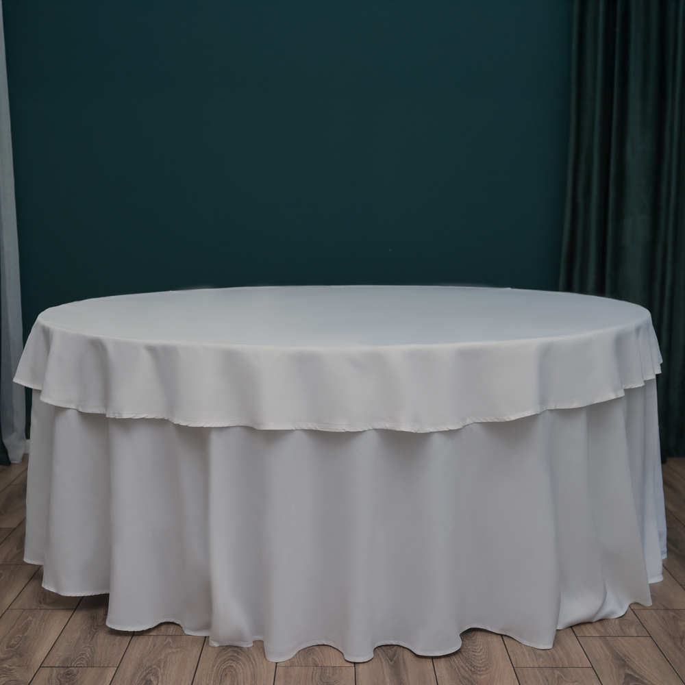 Наперон — это круглая скатерть диаметром 225 см в белом цвете, идеально подходящая для оформления стола диаметром около 90 см. Свисающие края создают элегантные складки, придавая вашему застолью особый шарм. Также его можно использовать как скатерть-напёрон для больших столов диаметром 150 или 180 см, добавляя дополнительный стиль и защиту поверхности. Материал — Профлайн, устойчивый и приятный на ощупь.