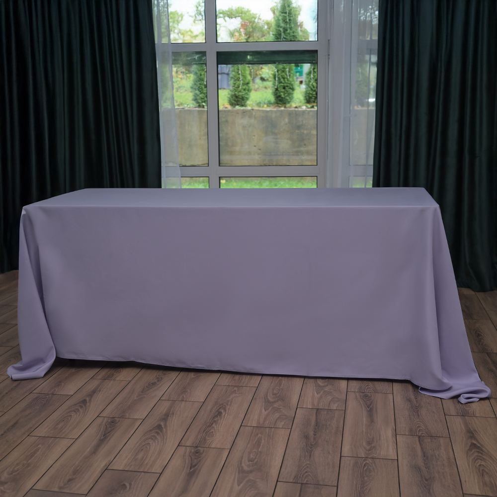 Скатерть прямоугольная фиолетовая, размер: 330х225 см в аренду для торжественных мероприятий. Эти скатерти специально созданы для широких прямоугольных столов, обеспечивая идеальную посадку благодаря своему увеличенному размеру. Они полностью скрывают столешницу и ножки, создавая аккуратный и элегантный вид. Идеально сочетаясь со стандартными размерами 180×80 см, они добавляют великолепие и стиль любому интерьеру. Изготовлены из матового материала «Профлайн», который отличается долговечностью и легкостью в уходе, делая каждое мероприятие особенным.