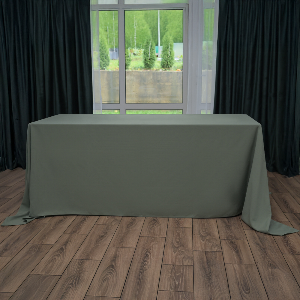 Скатерть прямоугольная оливковая, размер: 330х225 см в аренду для торжественных мероприятий. Эти скатерти специально созданы для широких прямоугольных столов, обеспечивая идеальную посадку благодаря своему увеличенному размеру. Они полностью скрывают столешницу и ножки, создавая аккуратный и элегантный вид. Идеально сочетаясь со стандартными размерами 180×80 см, они добавляют великолепие и стиль любому интерьеру. Изготовлены из матового материала «Профлайн», который отличается долговечностью и легкостью в уходе, делая каждое мероприятие особенным.