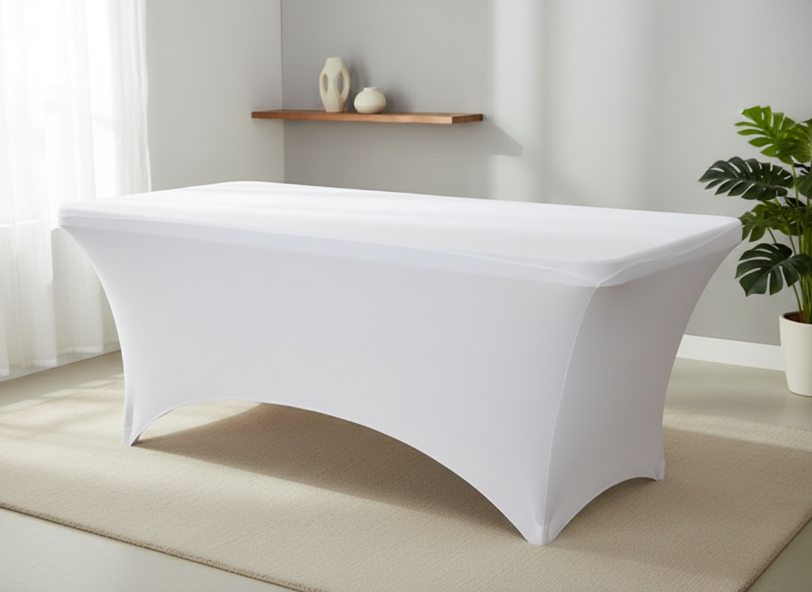 Предлагаем прямоугольный стол 180х80 см в белом стрейч-чехле — идеальное решение для вашего мероприятия!