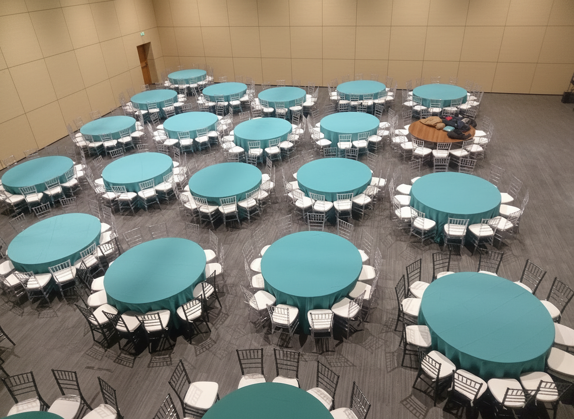 Для круглого стола диаметром 180 см идеально подходят скатерти диаметром 3,3 м, которые полностью закрывают стол до пола. Также можно использовать скатерти диаметром 2,9 м — они не будут доходить до пола на 20-25 см, что обеспечит комфорт при посадке.