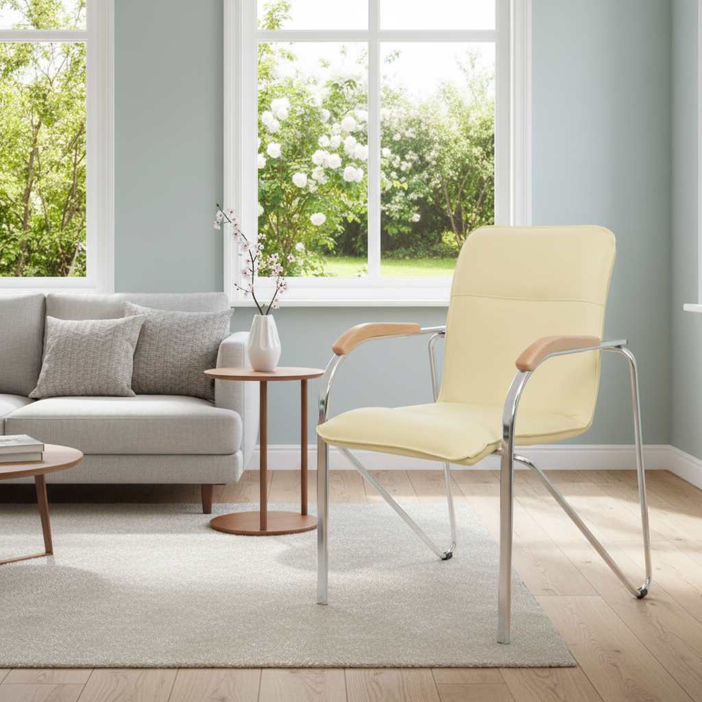 - Комфорт и стиль: Анатомическая форма и обивка из искусственной кожи делают его приятным и легко чистящимся — идеально для мероприятий любого формата.