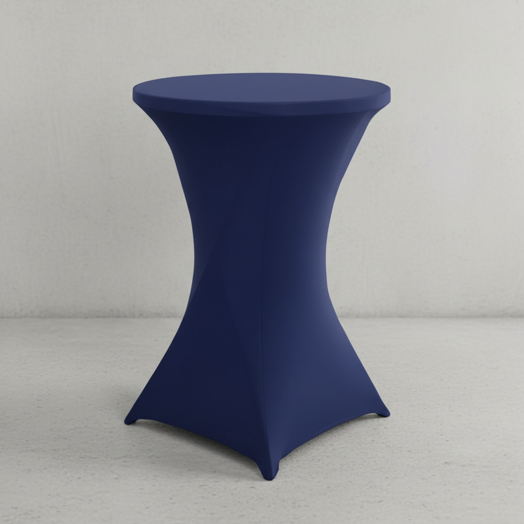 Темно-синий стрейч-чехол добавляет столу современный и изысканный вид. Чехол плотно облегает поверхность, создавая гармоничный и стильный образ, который подчеркнет атмосферу вашего праздника.